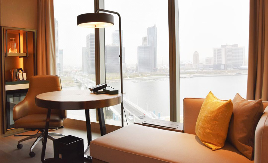天津于家堡洲际酒店及行政公寓位于滨海新区于家堡金融区,坐拥海河沿岸得天独厚的地理位置与旖旎秀美的风光景致,与响螺湾商务区隔河相望,距离滨海高铁站与地铁站步行仅需五分钟,毗邻津滨轻轨及塘沽火车站,连接天津大道、津滨高速、京津塘高速等快速路及高速公路,可方便快捷去往北京、天津市中心以及天津滨海国际机场。便利快捷的交通网络,充分满足商旅宾客居停需求。